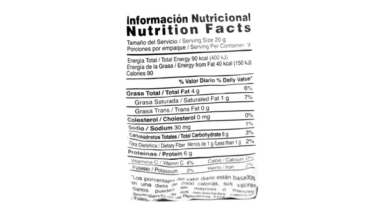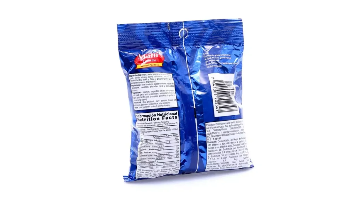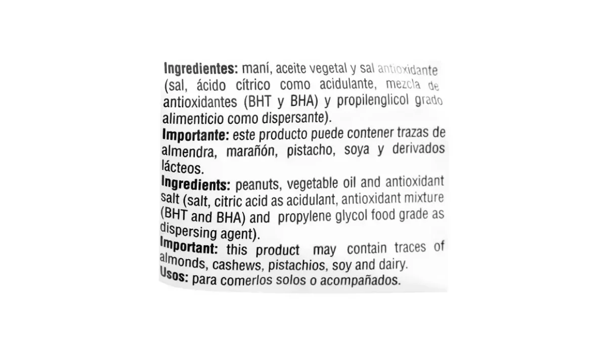 | Ingredientes | Maní, aceite vegetal de palma y sal |
