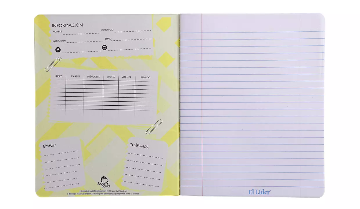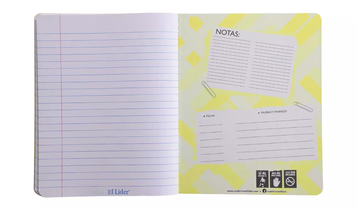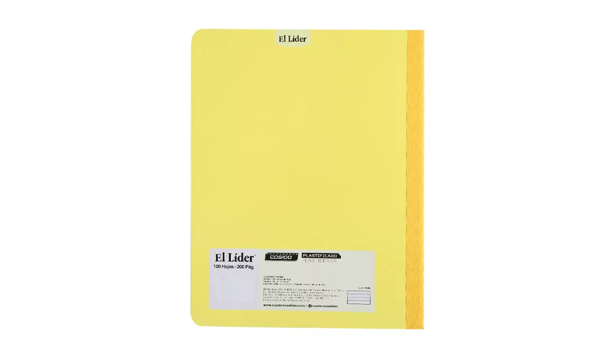 CUADERNO EL LÍDER COSIDO 100 HOJAS GRANDE AMARILLO