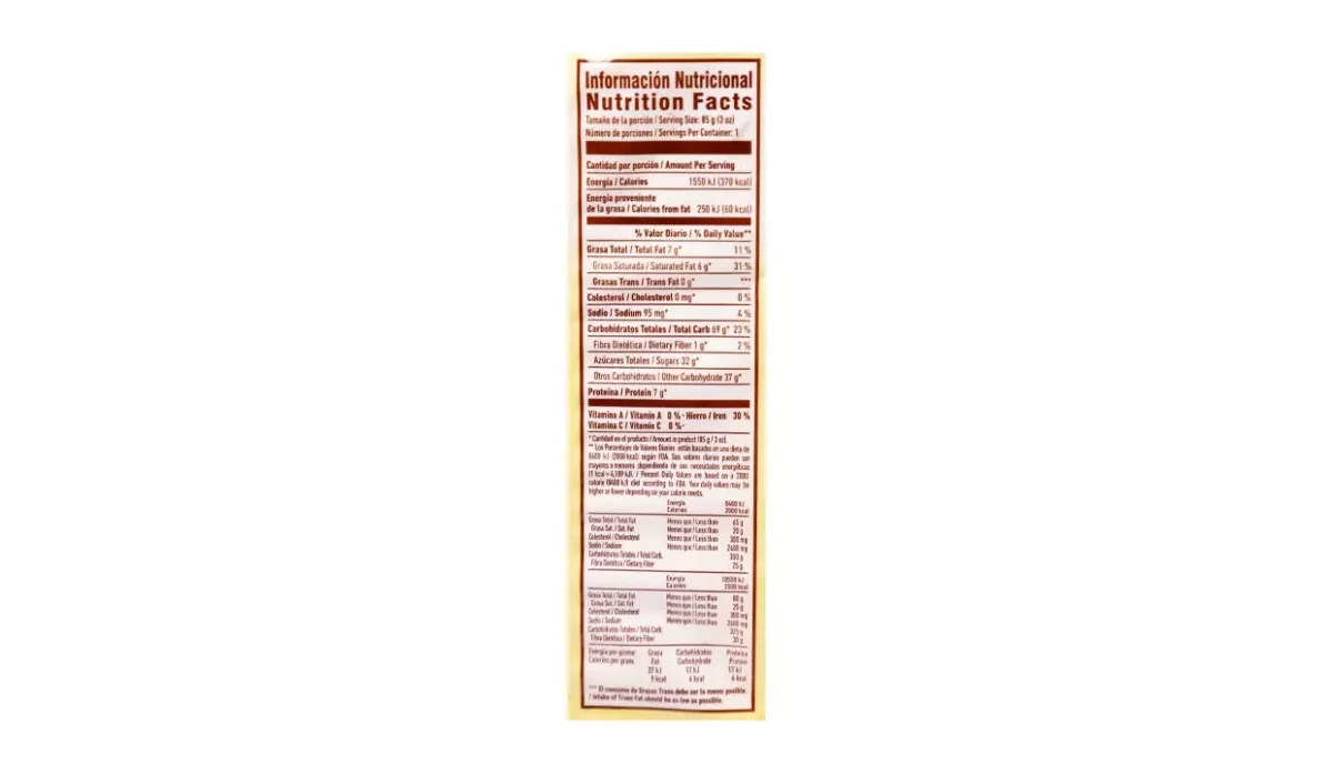 | Ingredientes | Cocoa, azúcar, trigo, leche, soya y sabor artificial a vainilla |