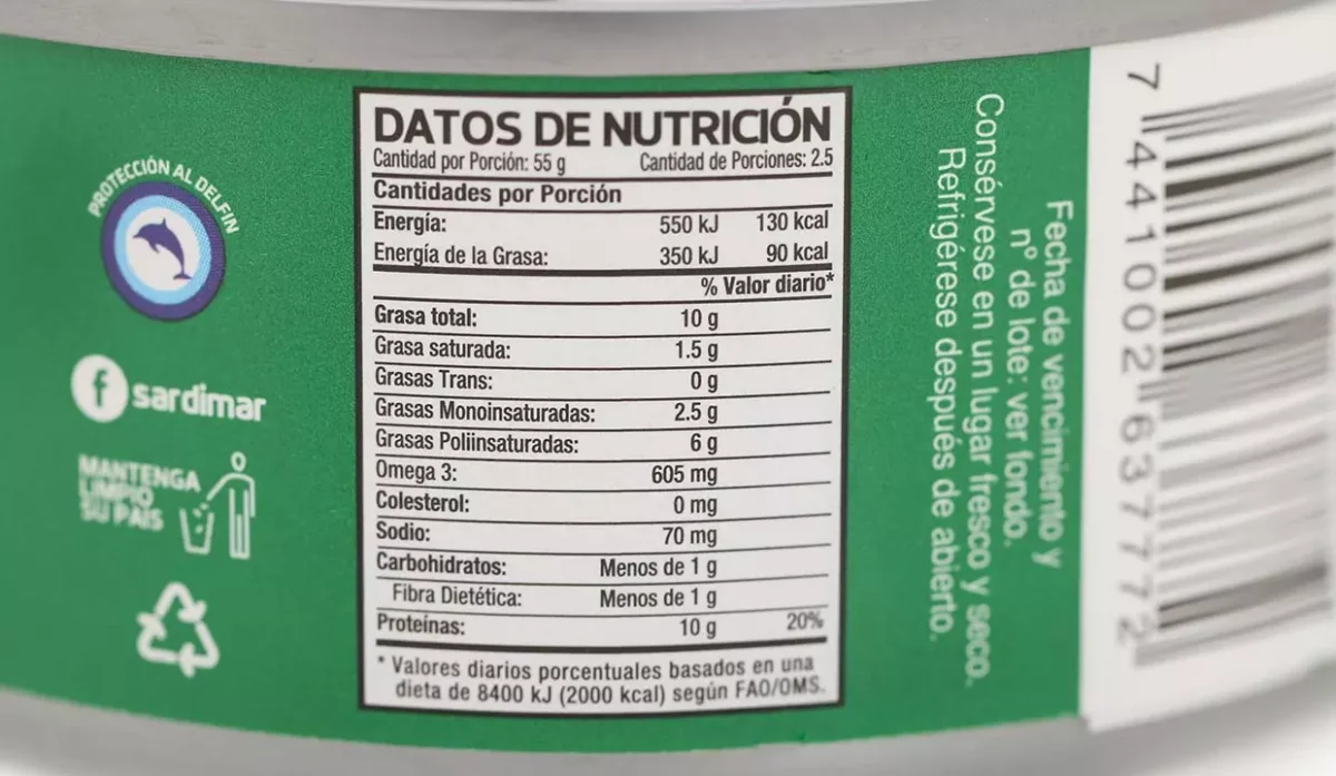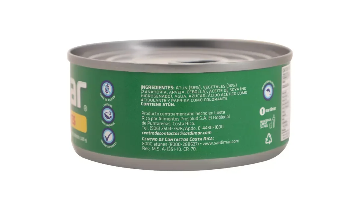 | Ingredientes | Atún, vegetales (zanahoria, arvejas y cebolla), aceite de soya, agua, azúcar, ácido acético como acidulante y paprika como colorante |