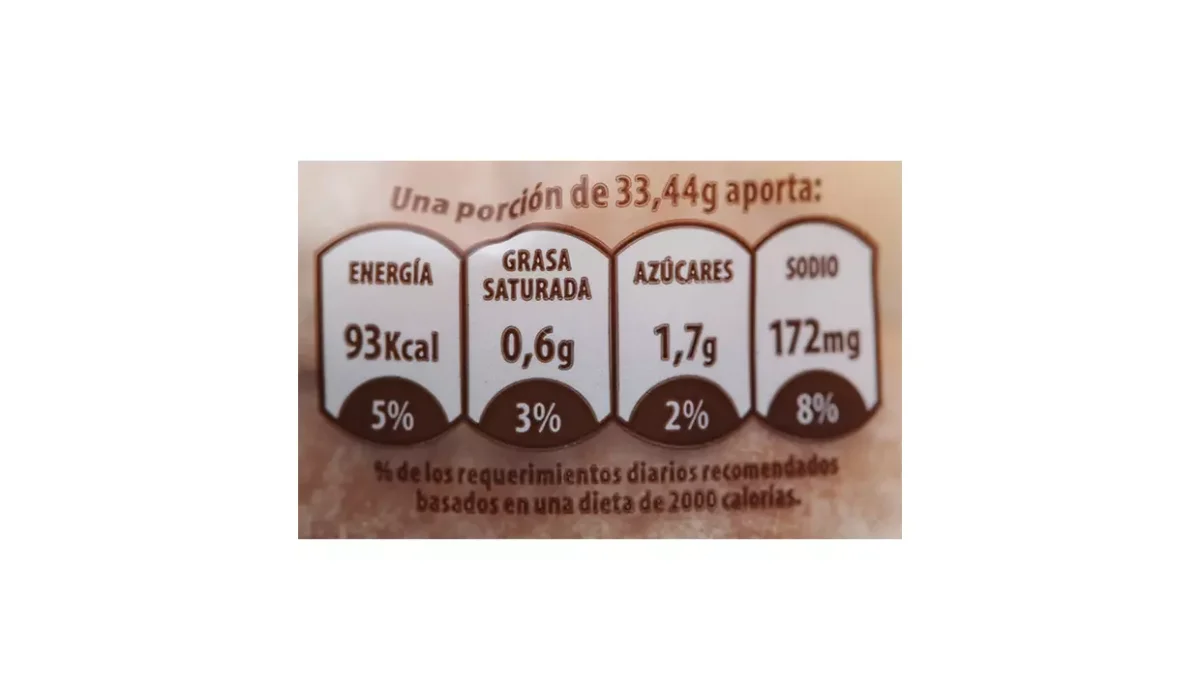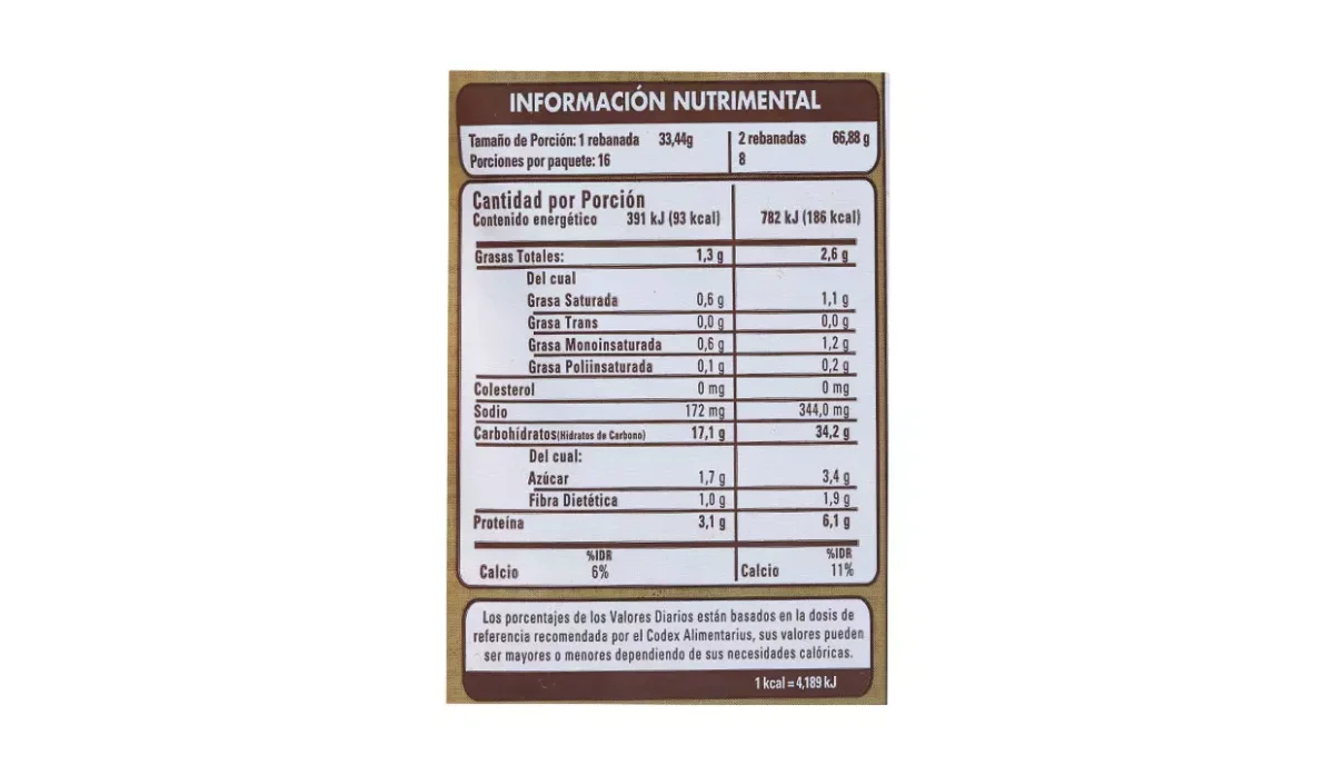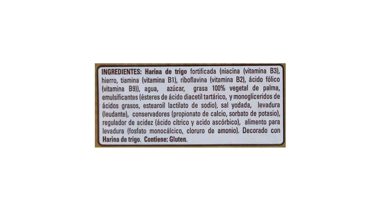 | Ingredientes | Harina de trigo, agua, azúcar, grasa vegetal de palma, sal yodada y levadura |