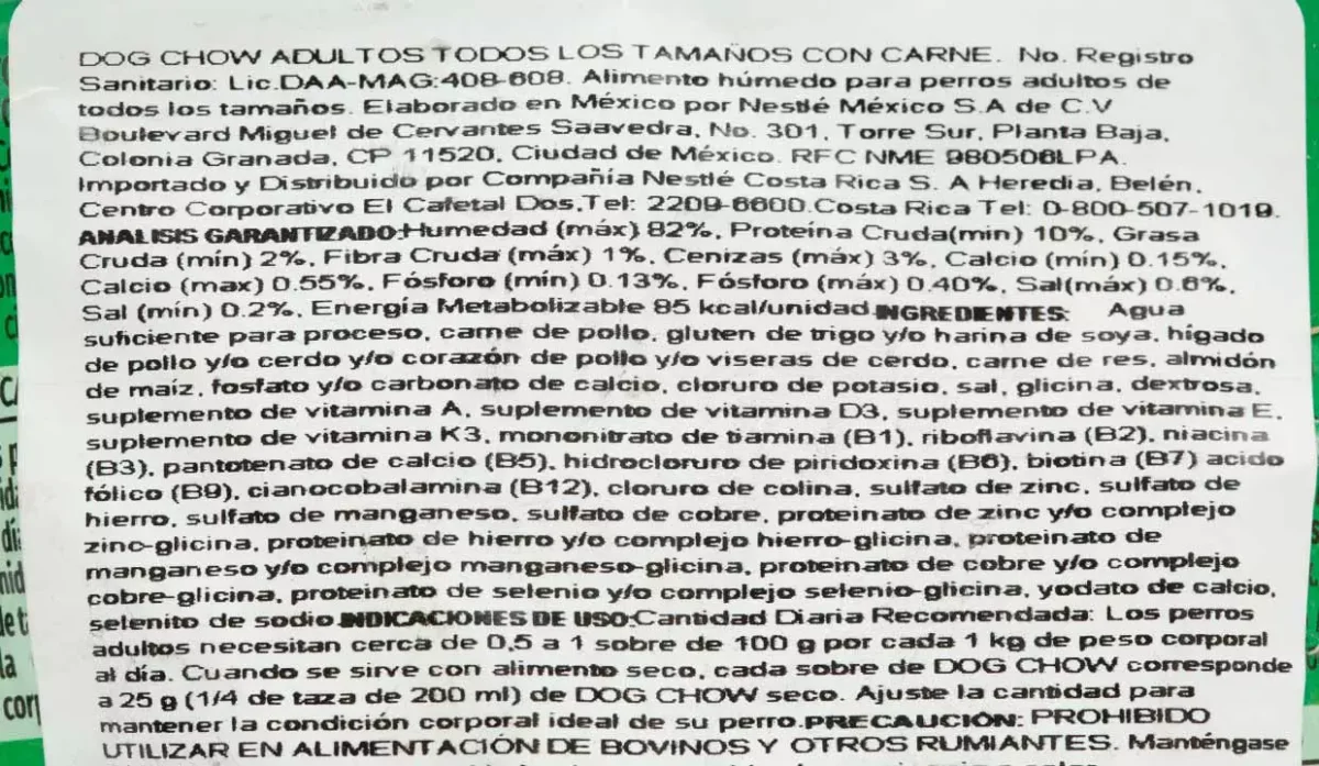 | Ingredientes | Hígado de cerdo, gluten de trigo, soya, carne pollo, carne de res e hígado de pollo |