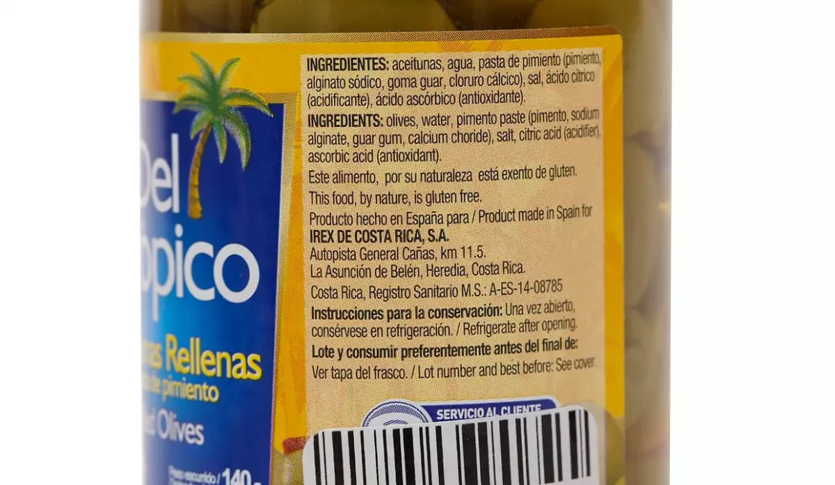 | Ingredientes | Aceitunas, agua, pasta de pimiento y sal |