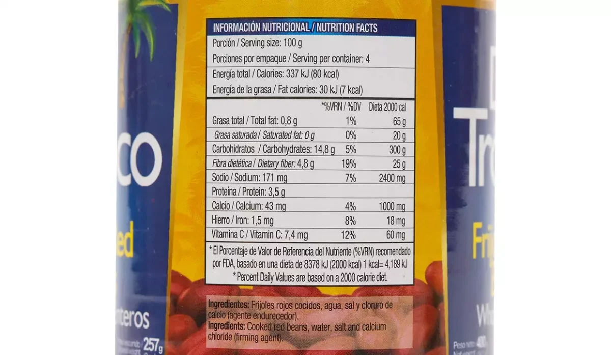 | Ingredientes | Frijoles rojos cocidos, agua y sal |