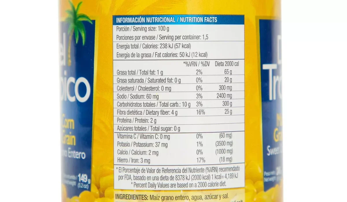 | Ingredientes | Maíz grano entero, agua, azúcar y sal |