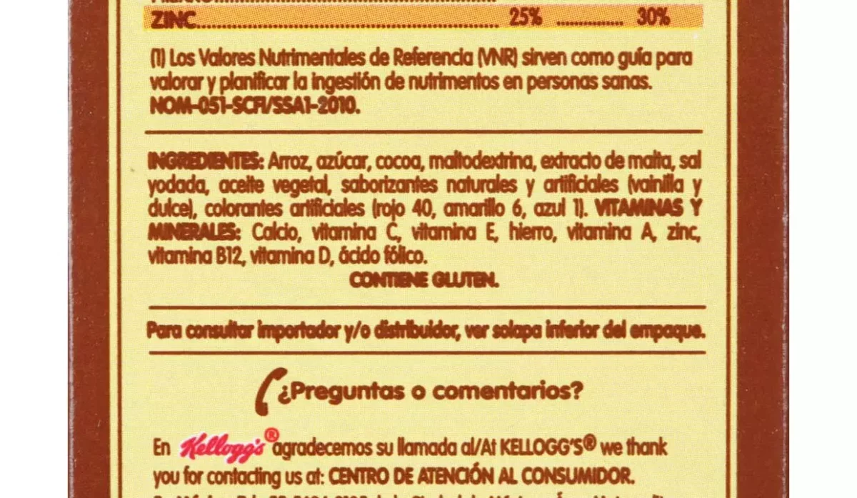| Ingredientes | Arroz, azúcar, cocoa, sal yodada, extracto de malta, aceite de vegetal y saborizantes naturales |
