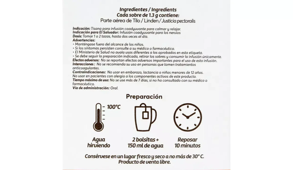 | Ingredientes | Parte aérea de tilo |