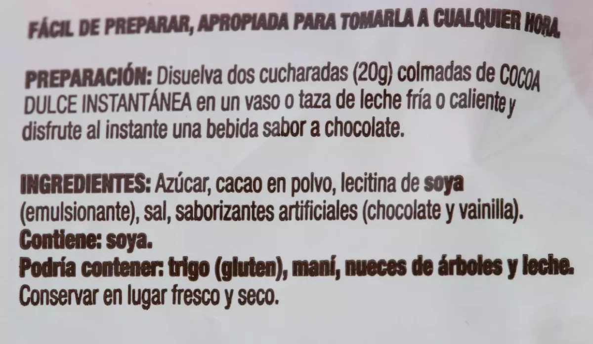| Marca | Cocoa dulce |