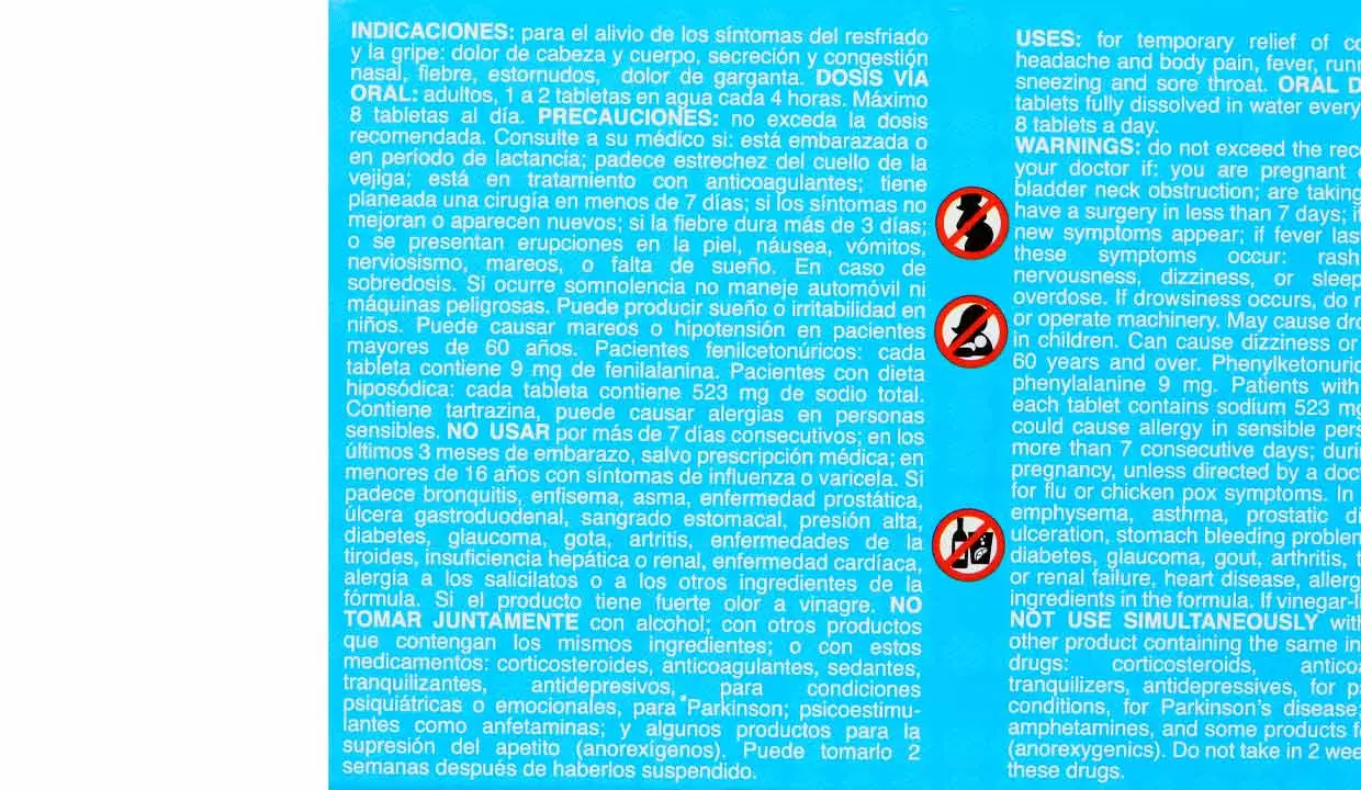 | Ingredientes | Ácido acetilsalicílico 500mg, maleato de clorfeniramina 2mg, bitartrato de fenilefrina 8mg e ingredientes activos |
