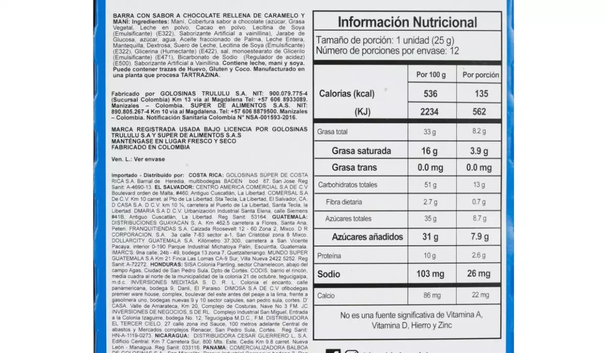 | Característica | Barra de chocolate rellena de caramelo y maní |