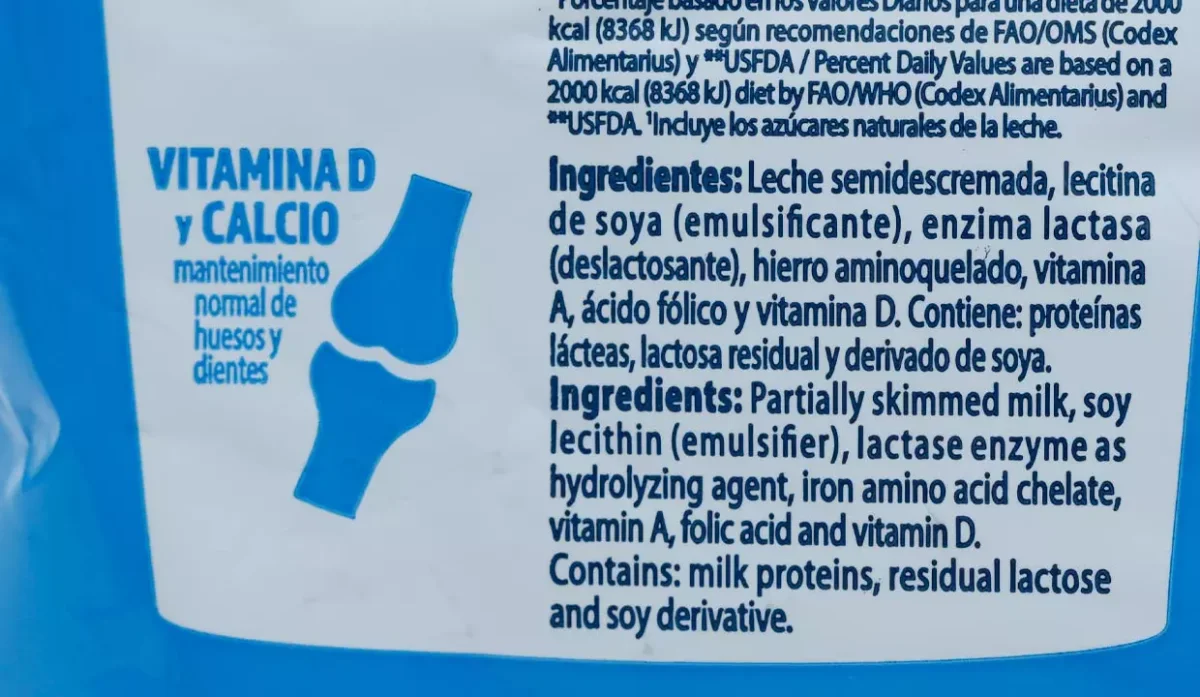 | Ingredientes | Leche semidescremada y proteínas lácteas |