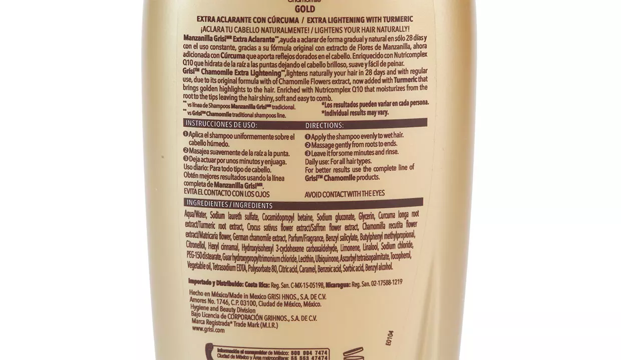 CHAMPÚ DE MANZANILLA CON CÚRCUMA GOLD EXTRA ACLARANTE GRISI