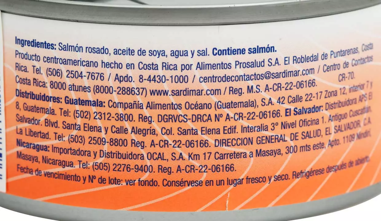 | Ingredientes | Salmón rosado, aceite de soya, agua y sal |