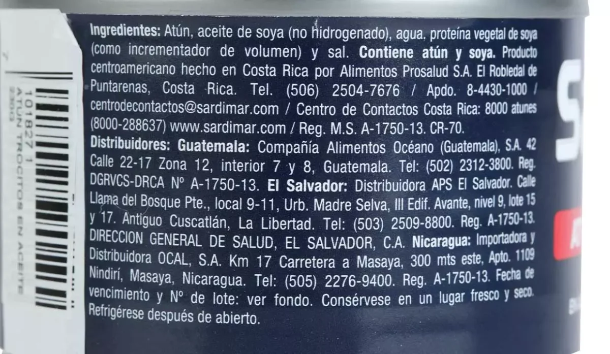 | Ingredientes | Atún, aceite de soya, agua y sal |