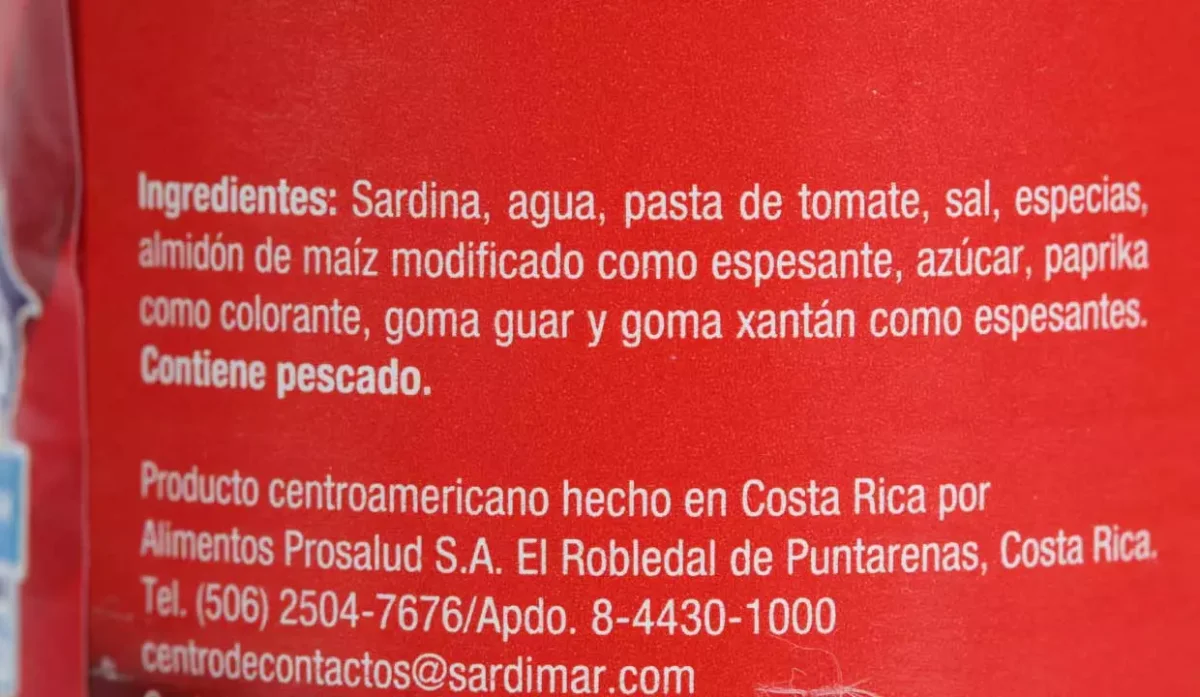 | Ingredientes | Sardina, agua, pasta de tomate, sal, especias, almidón de maíz, azúcar y paprika |