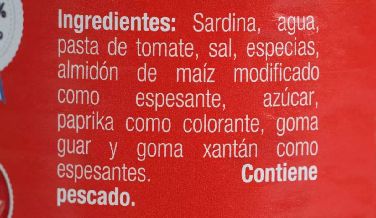 | Ingredientes | Sardina, agua, pasta de tomate, sal, especias, almidón de maíz, azúcar y paprika |