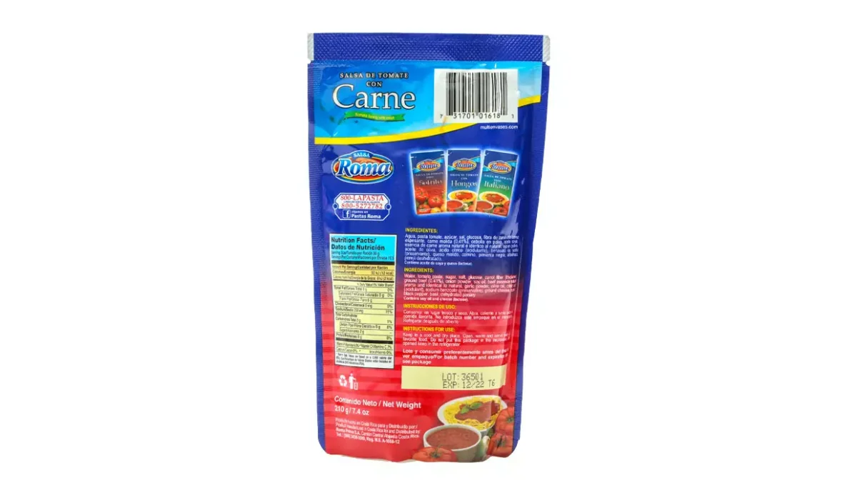 SALSA DE TOMATE CON CARNE ROMA DOY PACK 210G