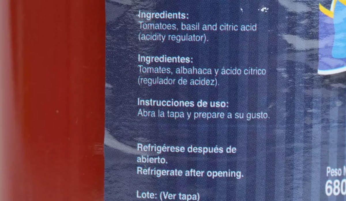 | Ingredientes | Tomates, albahaca y ácido cítrico |