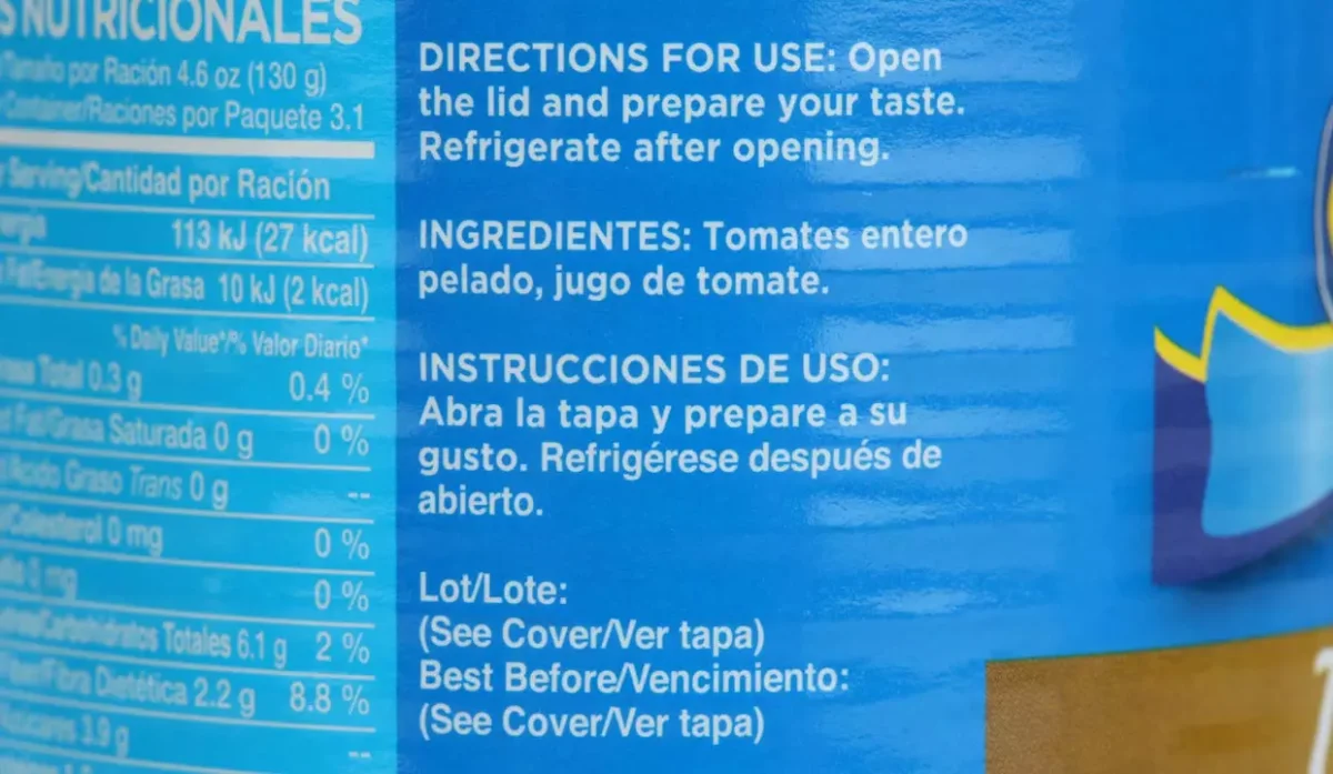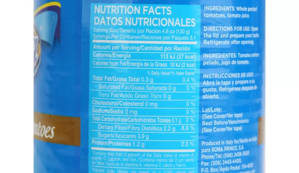 | Ingredientes | Tomates enteros pelados y jugo de tomate |