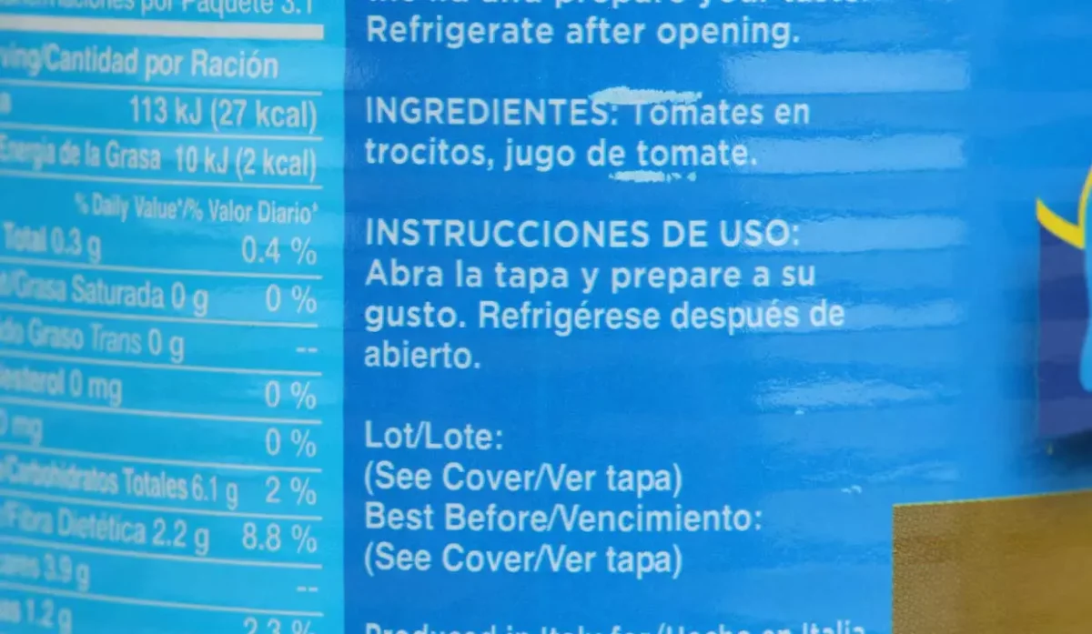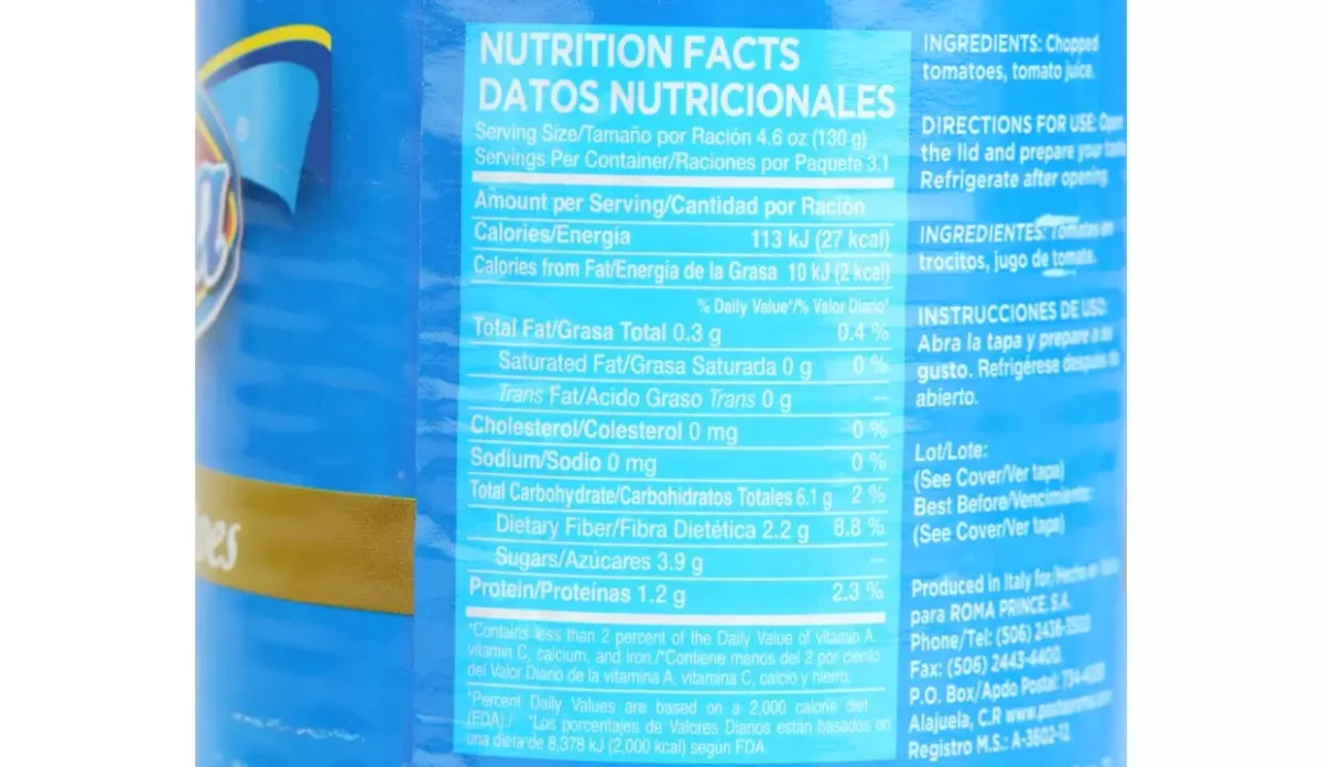 | Ingredientes | Tomates en trocitos y jugo de tomate |