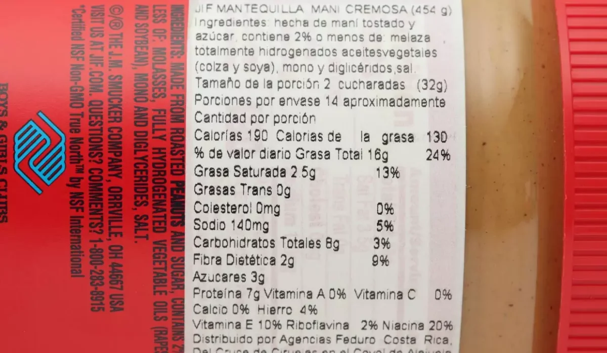| Ingredientes | Maní tostado, azúcar y aceite vegetal |