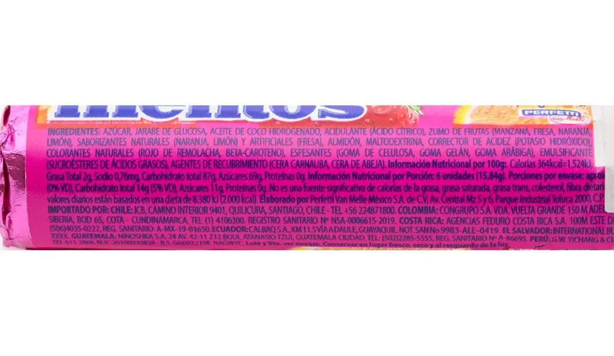 | Ingredientes | Agua, jarabe de glucosa, aceite de coco hidrógenado, zumo de fruta (manzana, fresa, naranja y limón), saborizantes naturales a naranja y limón, saborizantes artificiales a fresa, goma gelán y goma arábiga |