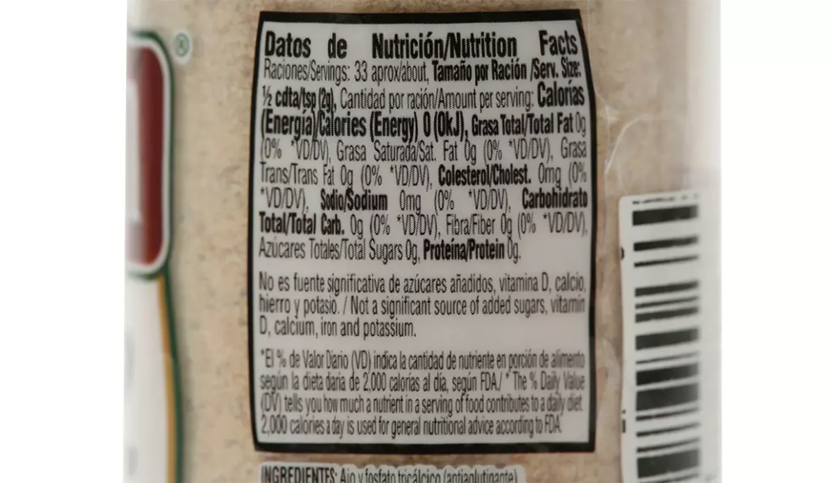 | Ingredientes | Ajo molido |