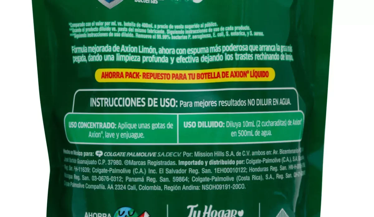 LAVAPLATOS LÍQUIDO AXION DOY PACK LIMÓN 400ML