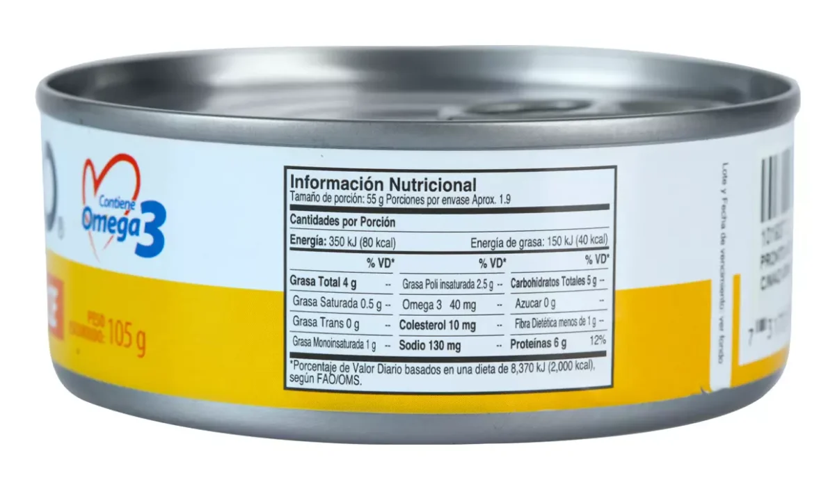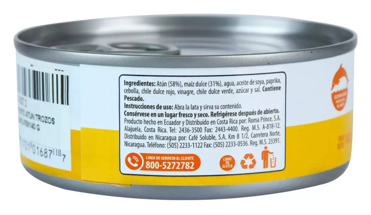 | Ingredientes | Atún (58%), maíz dulce (31%), aceite de soya, agua, paprika, cebolla, chile dulce rojo, vinagre, chile dulce verde y sal |