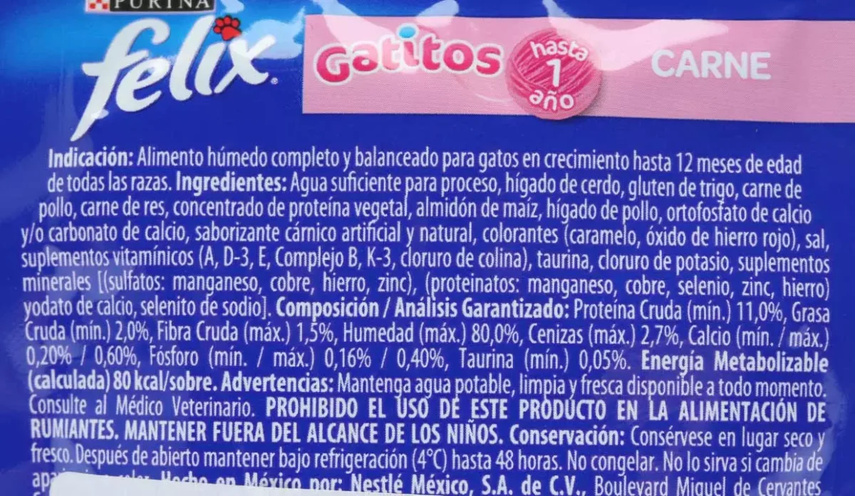 | Ingredientes | Hígado de cerdo, carne de pollo y de res |