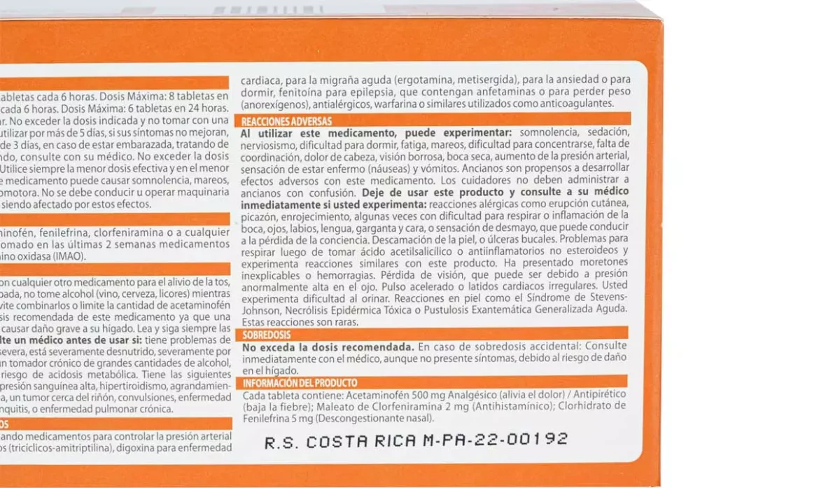 PANADOL SINUSITIS 16 TABLETAS