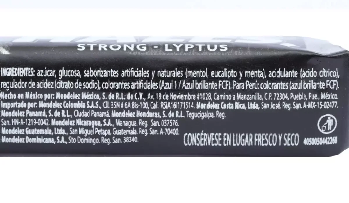 | Ingredientes | Azúcar, glucosa, saborizantes naturales y artificiales a mentol, eucalipto y menta |