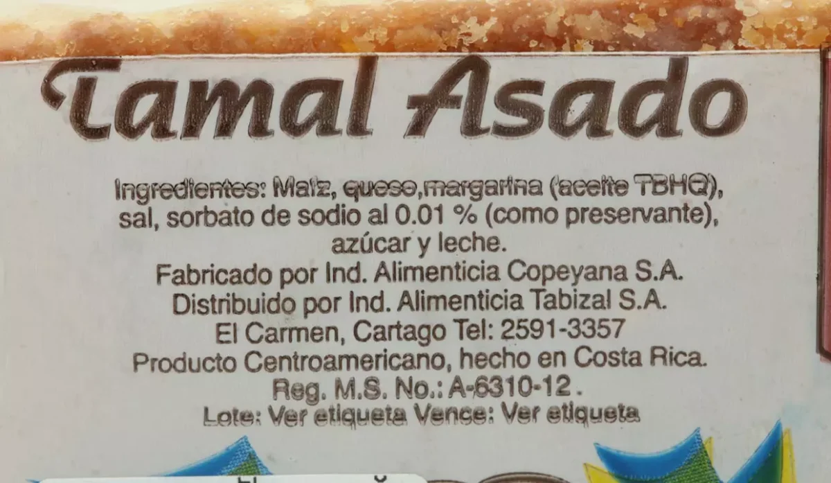 | Ingredientes | Maíz, queso, margarina, sal, azúcar y leche |