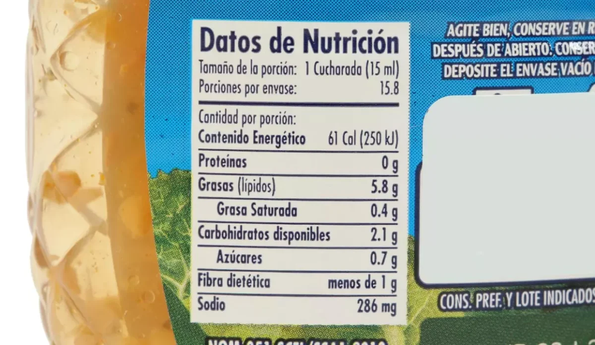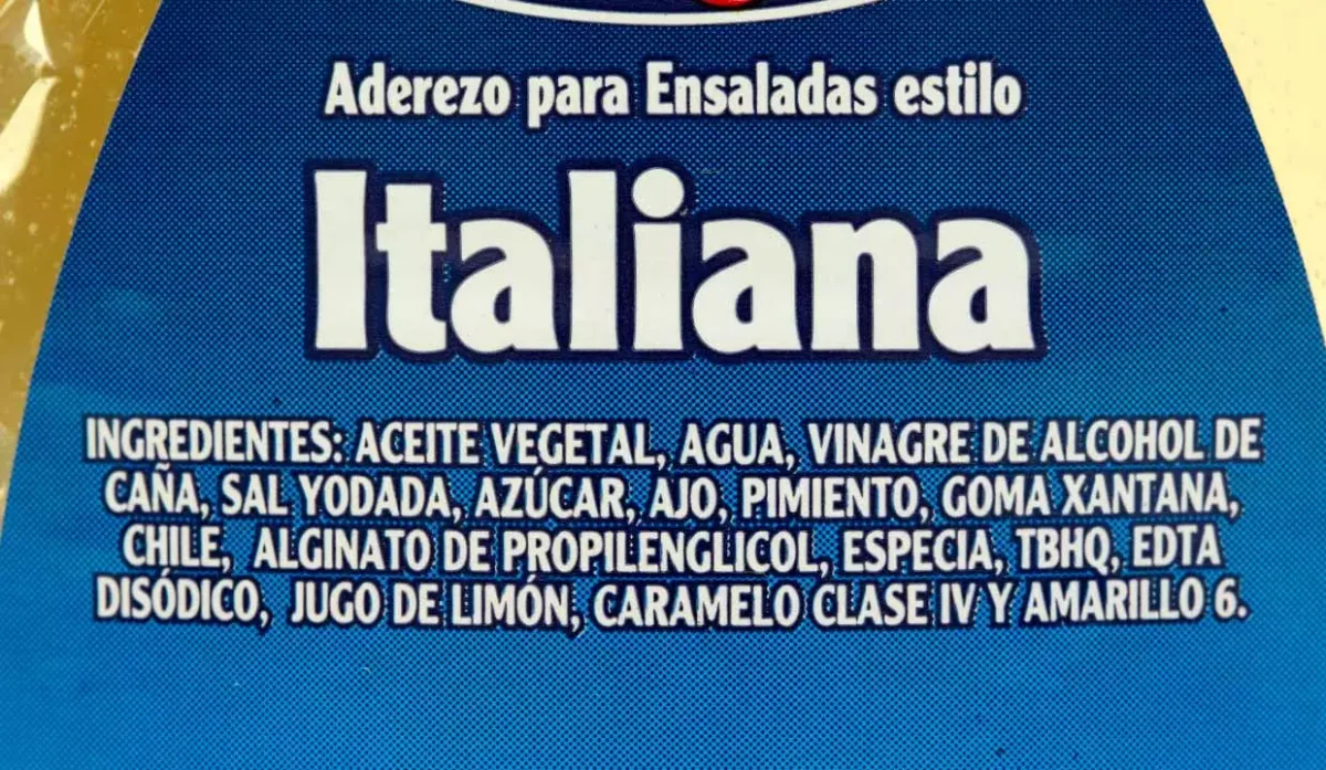 | Ingredientes | Aceite vegetal, agua, vinagre de alcohol de caña, sal yodada, azúcar, ajo, pimiento, chile, especias y jugo de limón |