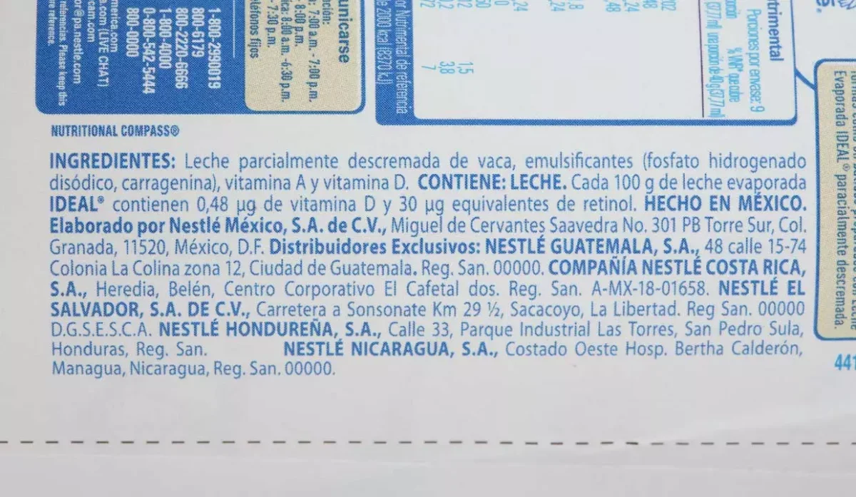 | Ingredientes | Leche parcialmente descremada de vaca, vitamina A y D |