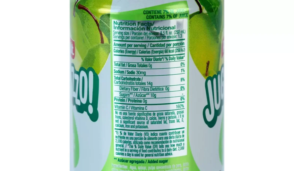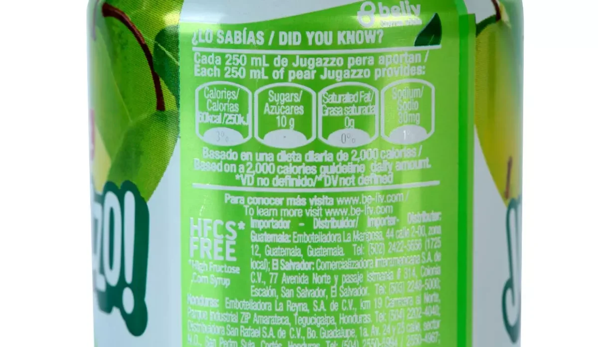 | Ingredientes | Agua, azúcar, jugo concentrado de pera y sucralosa |