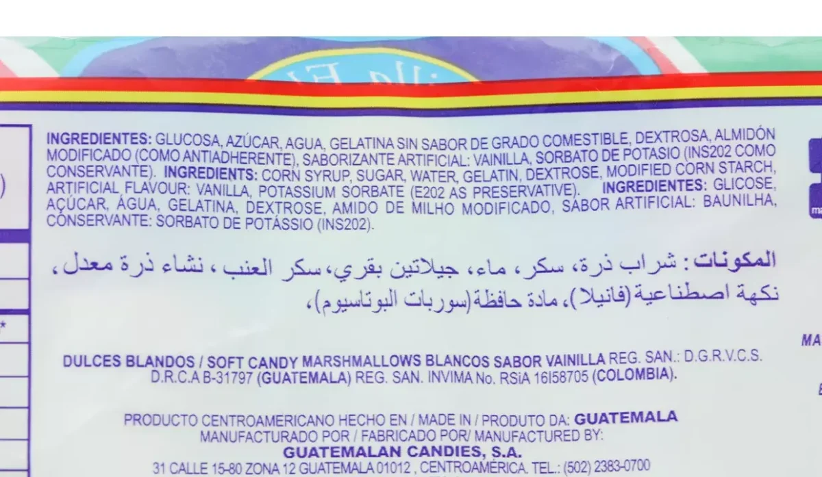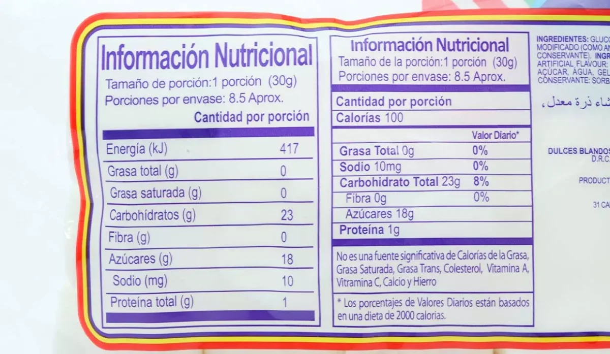 | Ingredientes | Sabor artificial a vainilla |