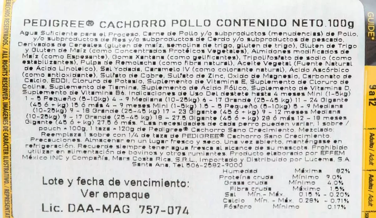 | Ingredientes | Carne de pollo, res, cerdo, pescado, derivados de cereales |