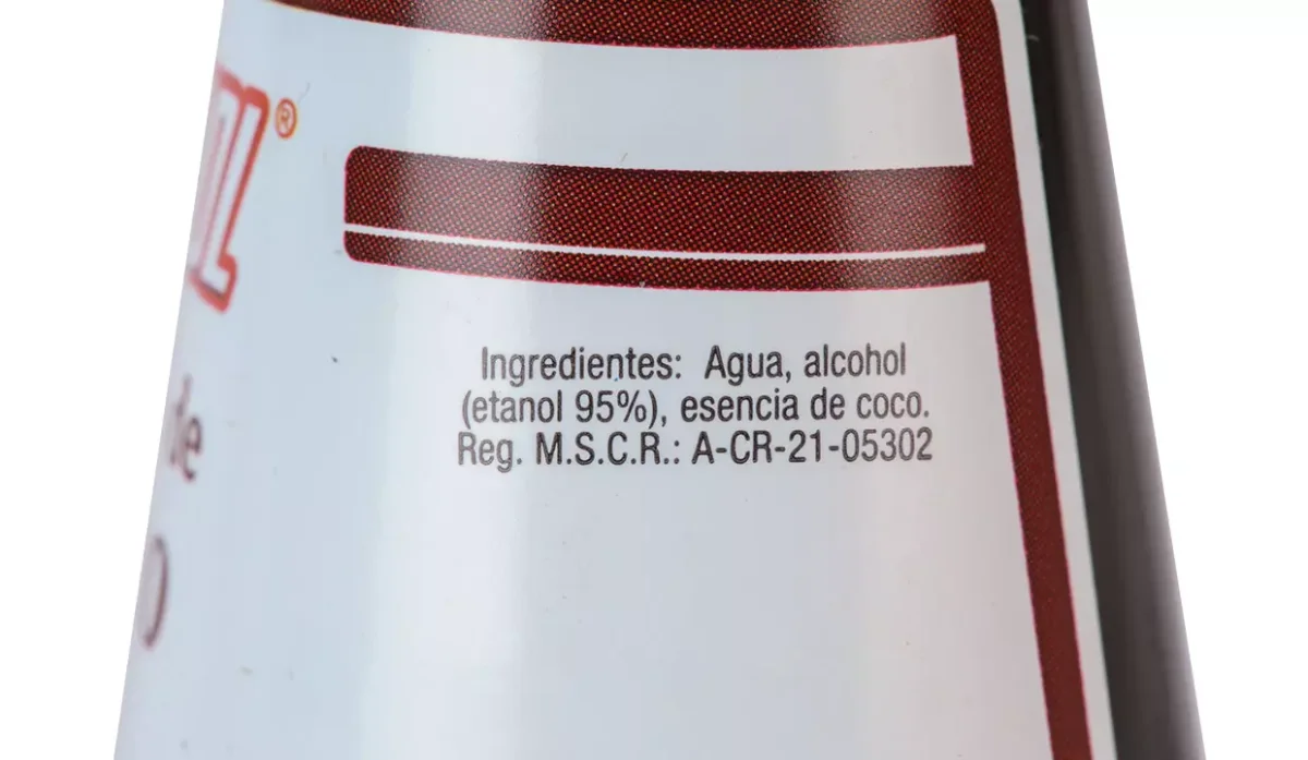 | Ingredientes | Agua, alcohol y esencia de coco |