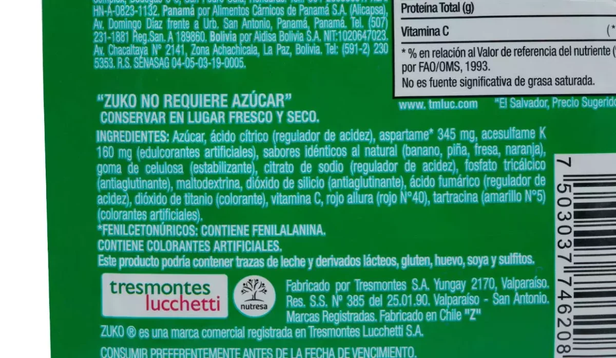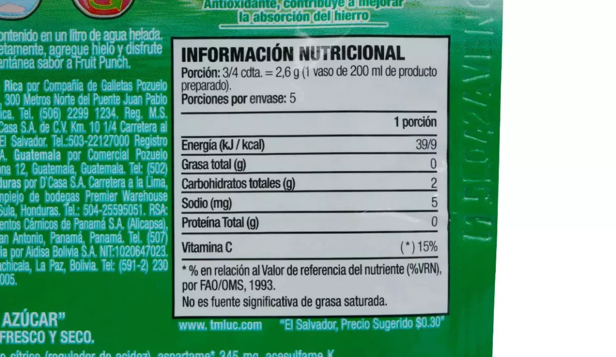 | Sabor | Fruit punch |