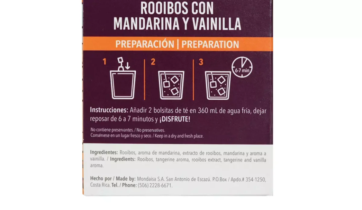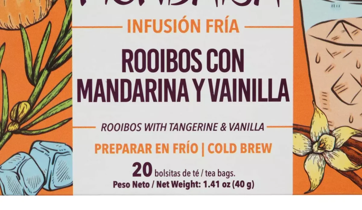 | Ingredientes | Rooibos, mandarina y vainilla |