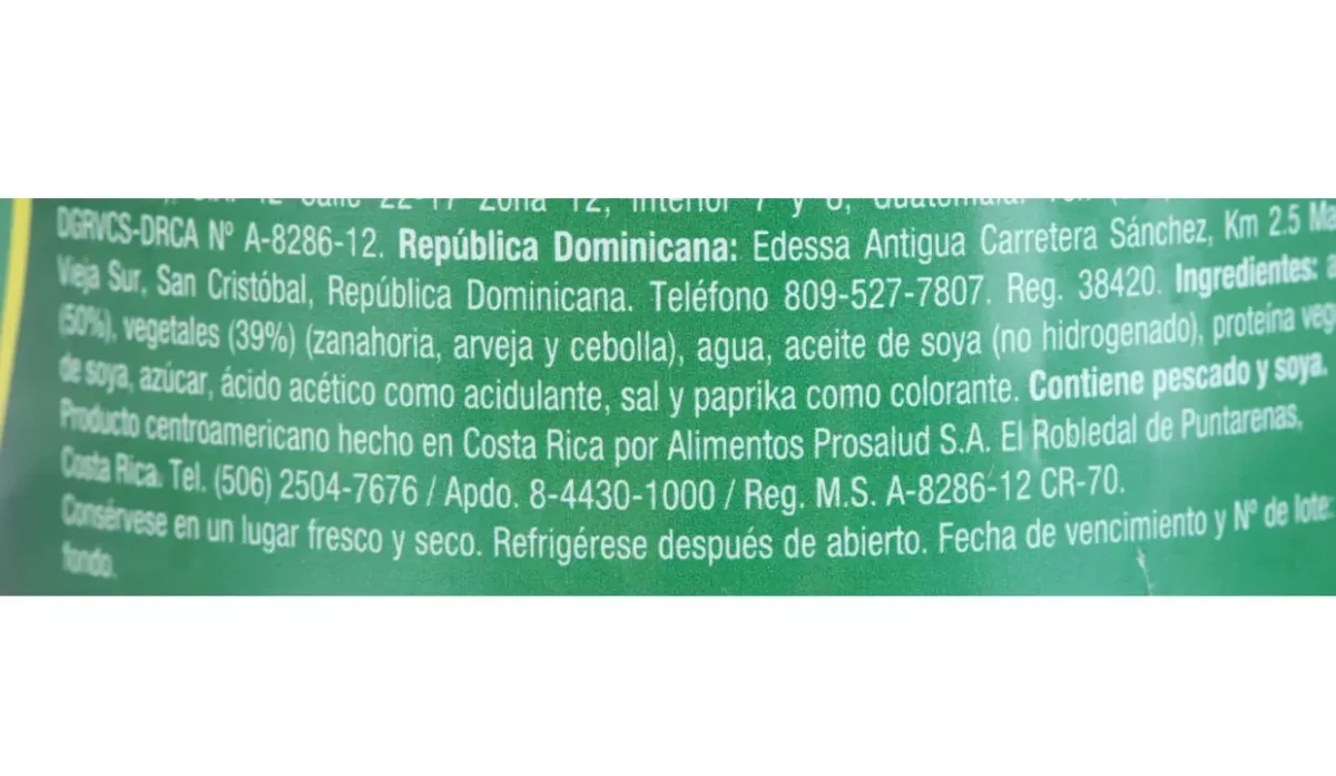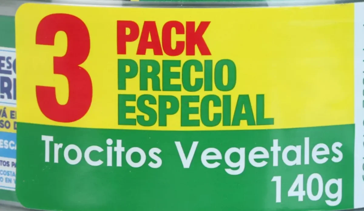 | Ingredientes | Atún, vegetales (zanahoria, arvejas y cebolla), aceite de soya, agua, azúcar, ácido acético como acidulante y paprika como colorante |
