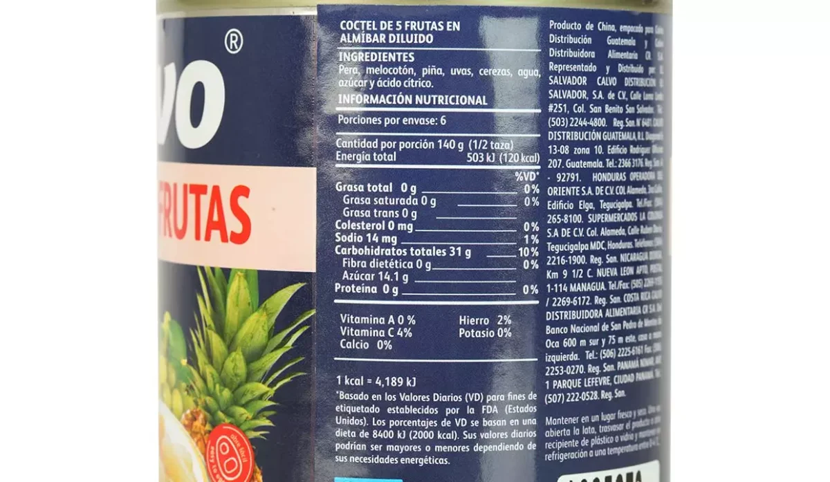 | Ingredientes | Pera, melocotón, piña, uvas, cerezas, agua, azúcar y ácido cítrico |