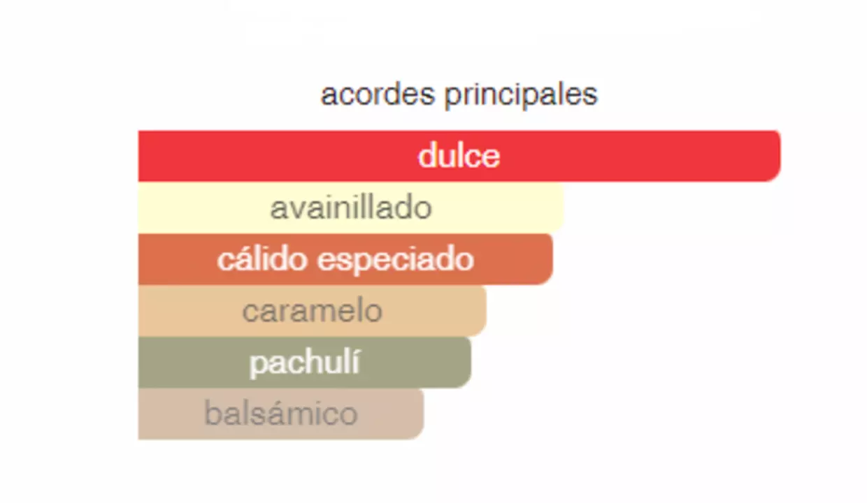 | Características | Fragancia de la familia olfativa almizcle floral amaderado para mujeres |