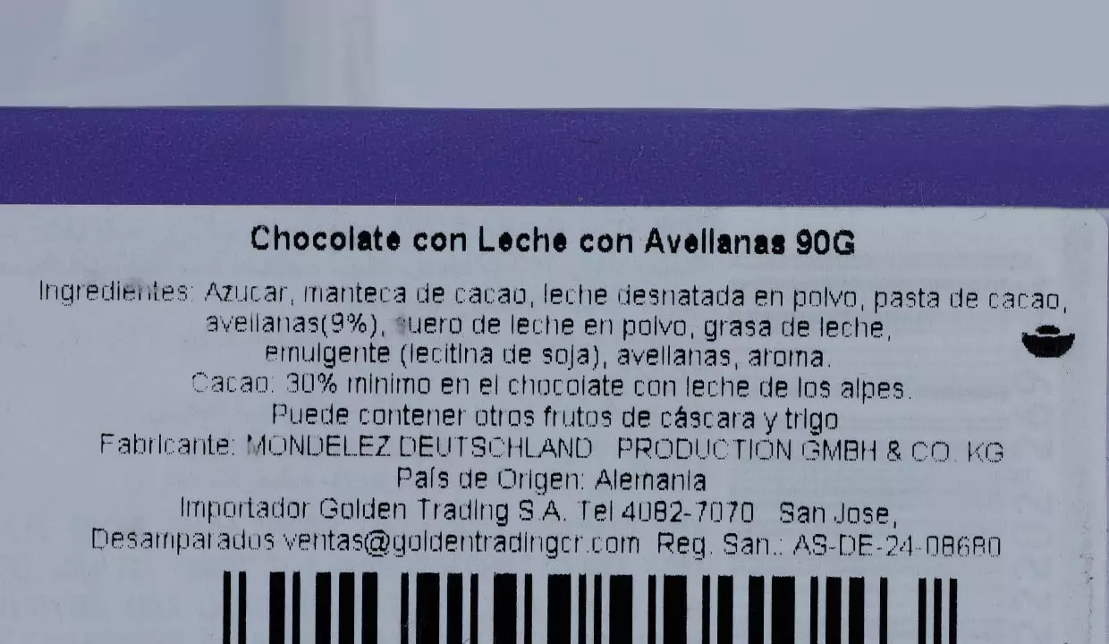 | Sabor | Leche con trozos de avellana |