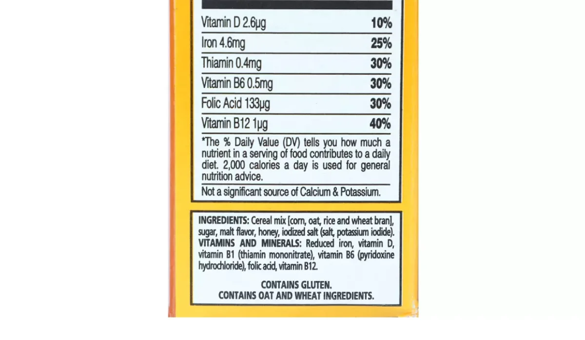 | Ingredientes | Maíz, avena, arroz, salvado de trigo, azúcar, extracto de malta, miel, sal, vitaminas y minerales |