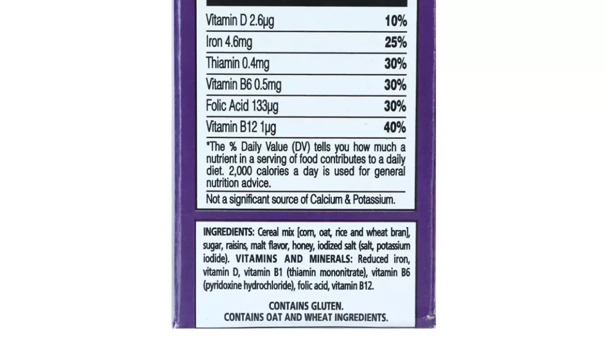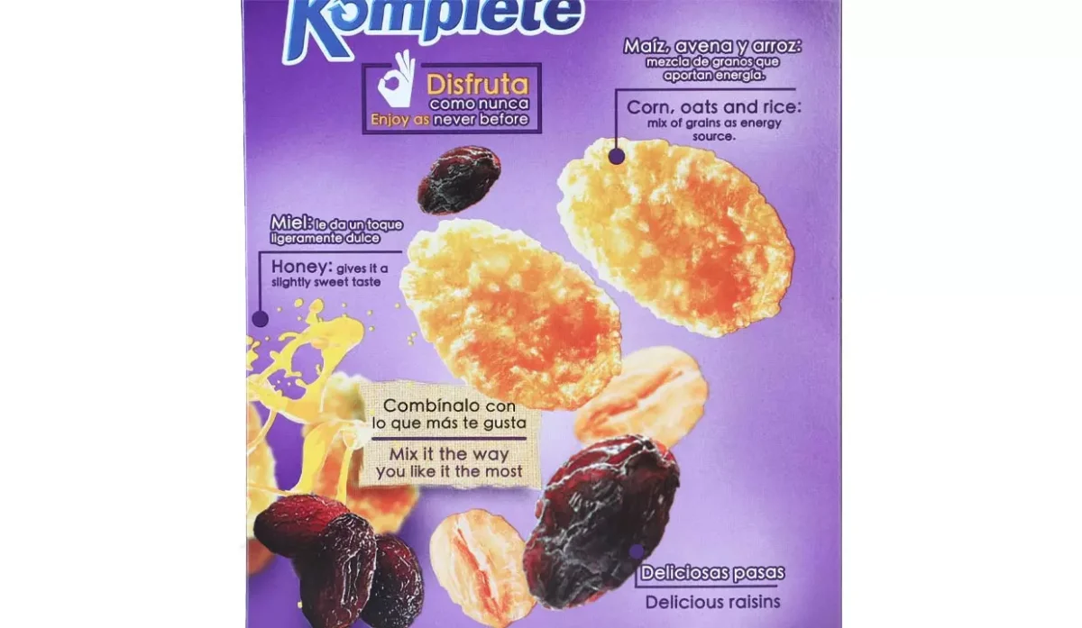 | Ingredientes | Maíz, avena, arroz, salvado de trigo, azúcar, uvas pasas, extracto de malta, miel, sal, vitaminas y minerales |