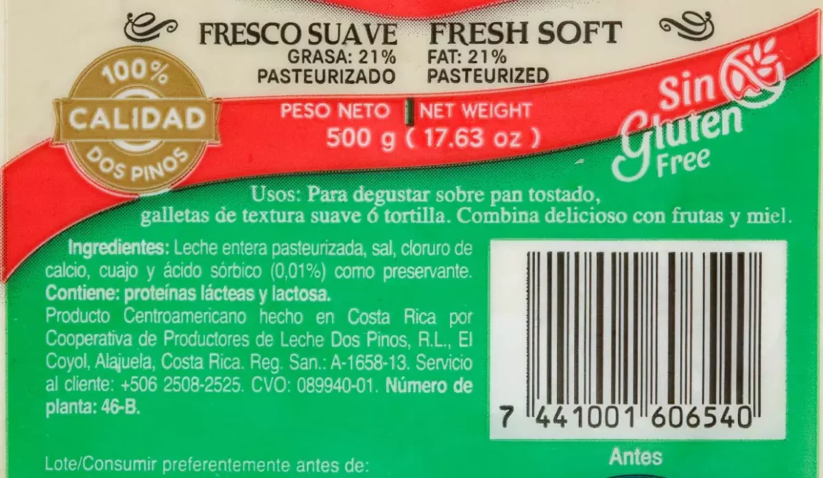 QUESO TIPO TURRIALBA DOS PINOS 500G