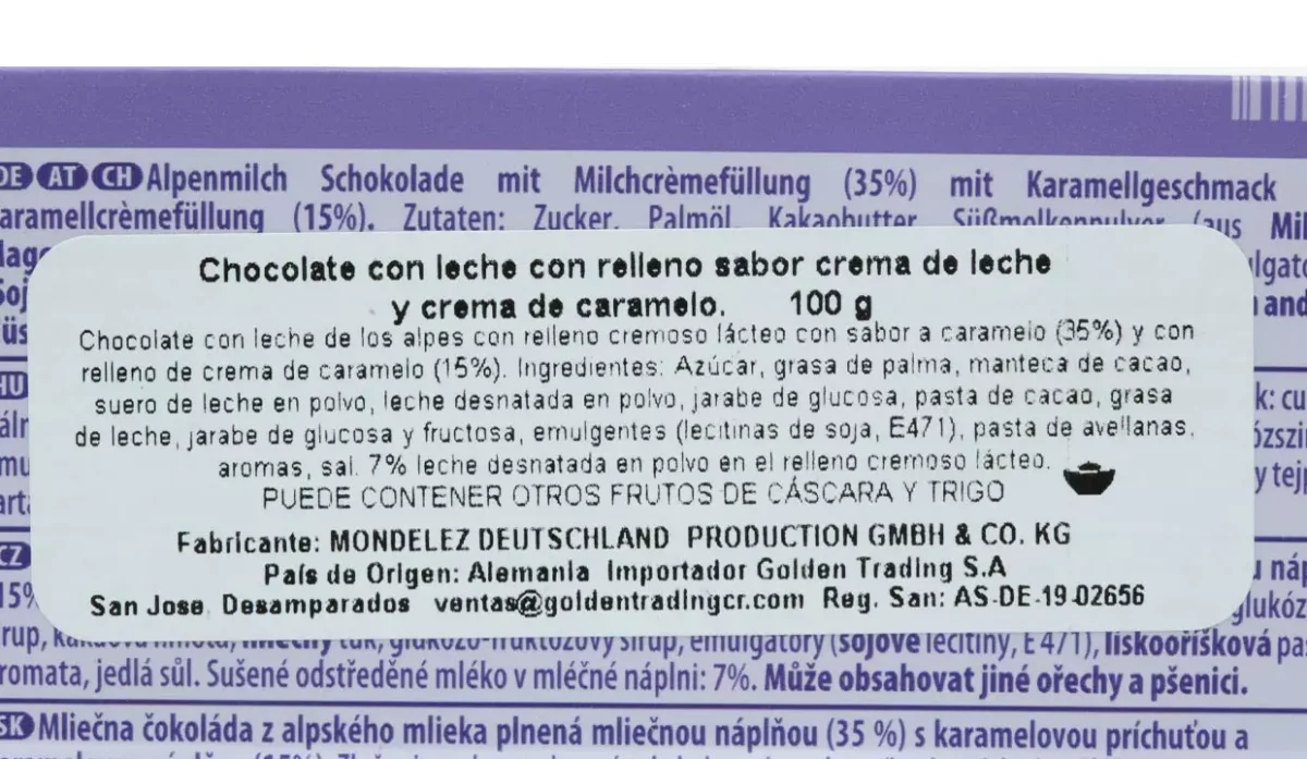 | Sabor | Leche con relleno sabor crema de leche y crema de caramelo |