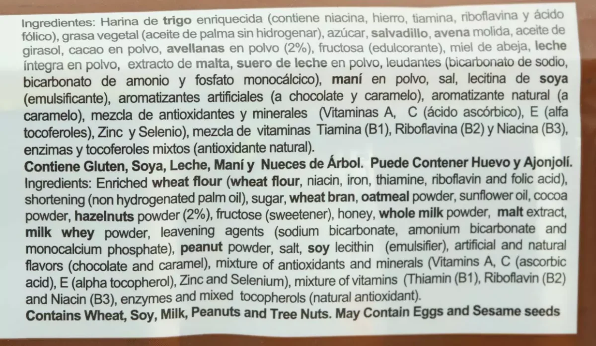 GALLETA TOSH RELLENA CON CHOCOLATE Y AVELLANAS 8 UNIDADES